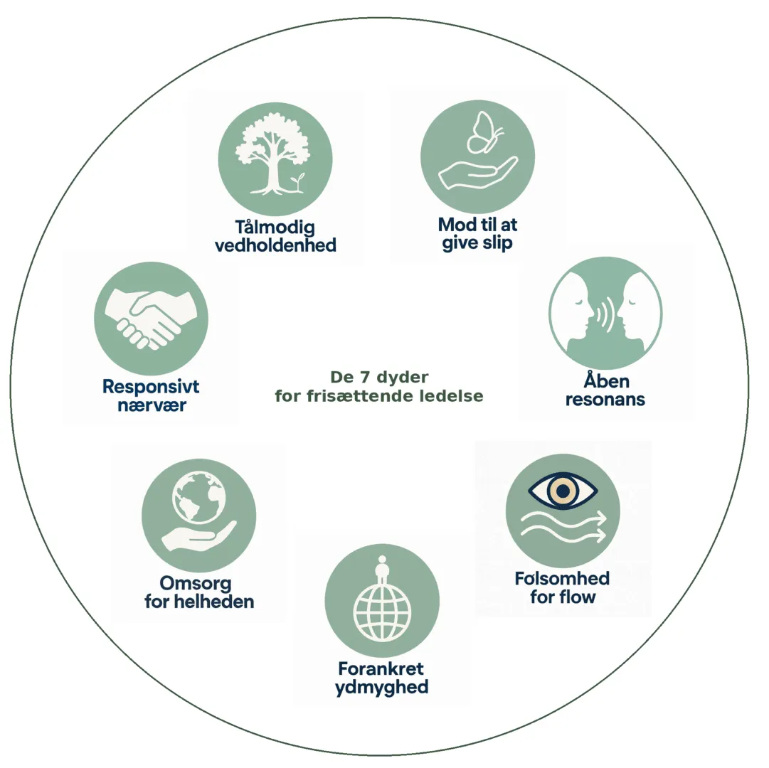 Frisættende ledelse handler i sidste ende ikke om metoder, men om, hvordan du vælger at stå i verden. De syv dyder er ikke regler, du kan implementere, men pejlemærker, du kan vende tilbage til, når du mærker usikkerheden, kompleksiteten eller presset.